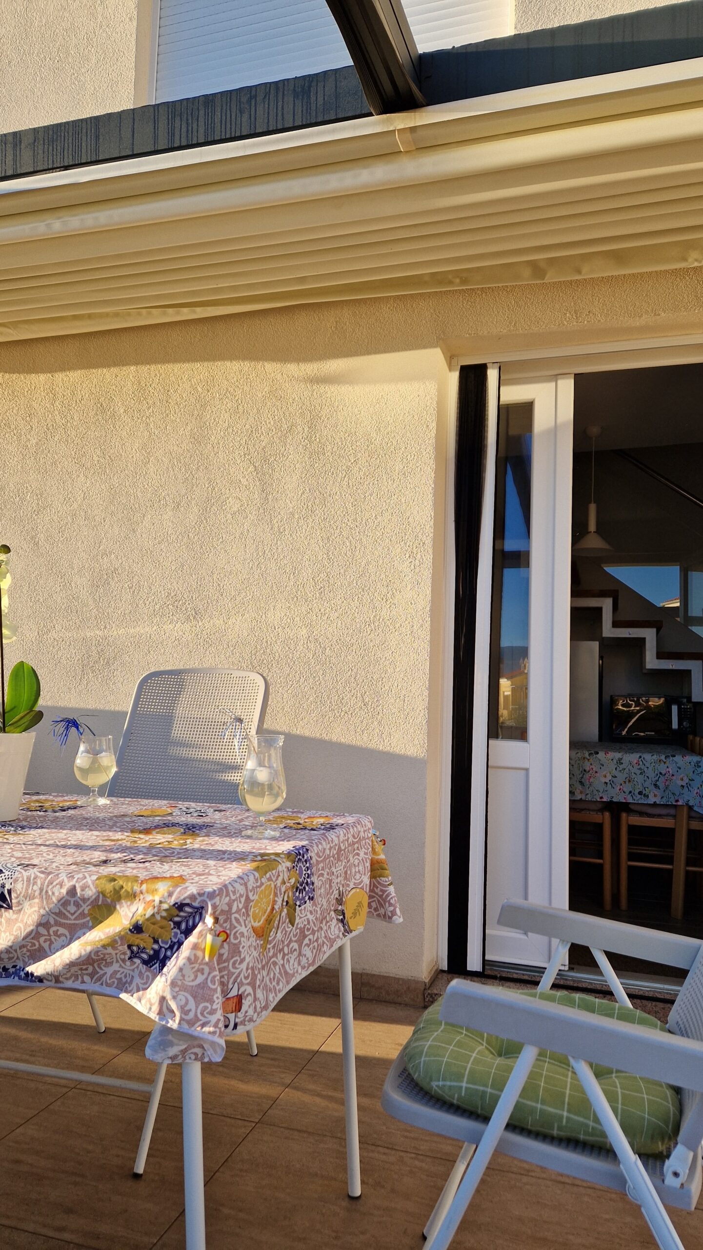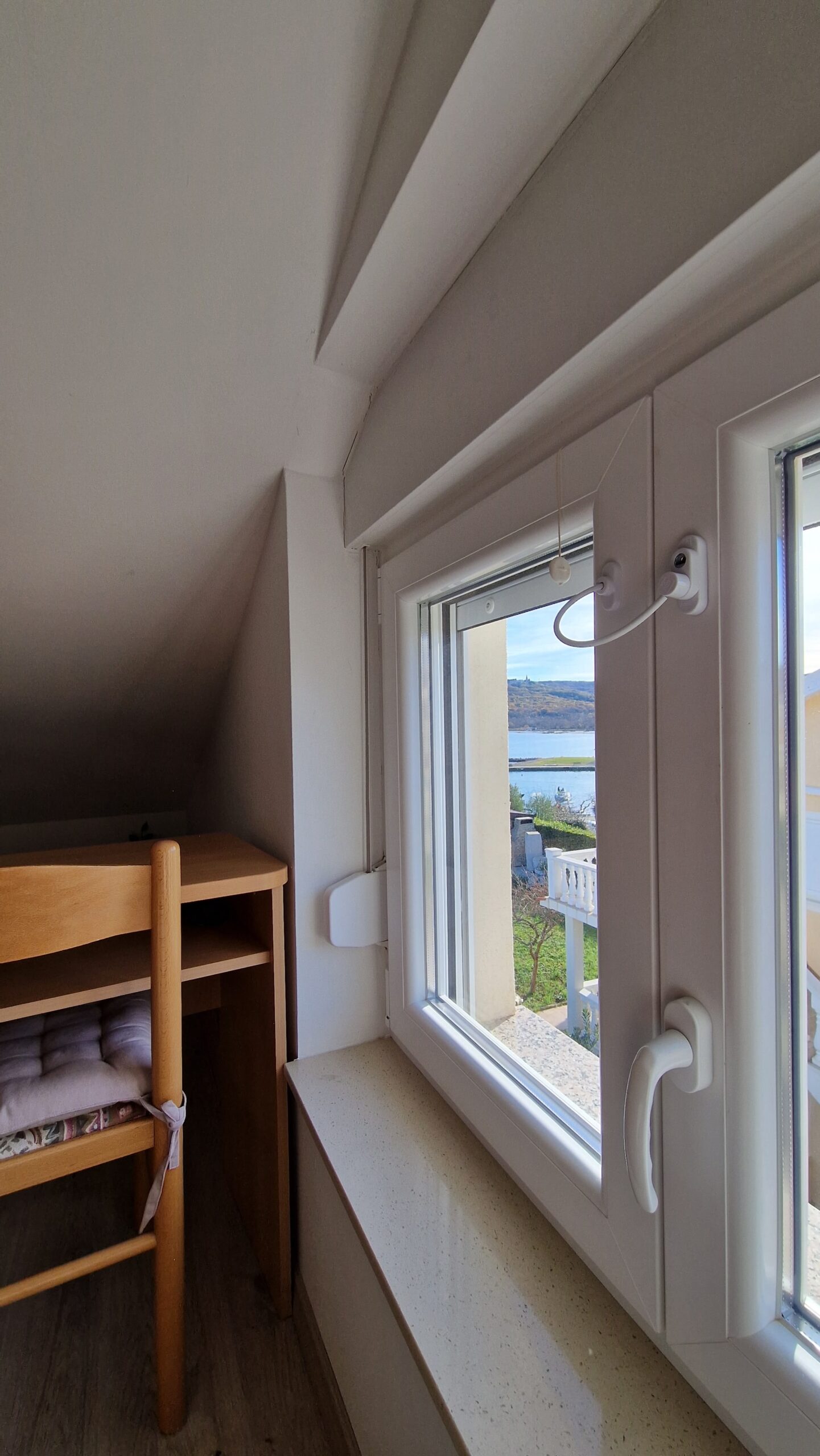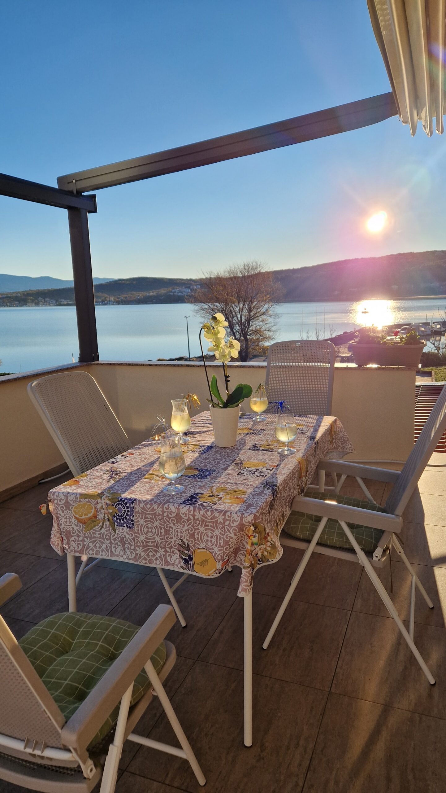 A két hálós apartman az emeleten van, kényelmes, nagy teraszáról remek kilátás nyílik a Soline öbölre.