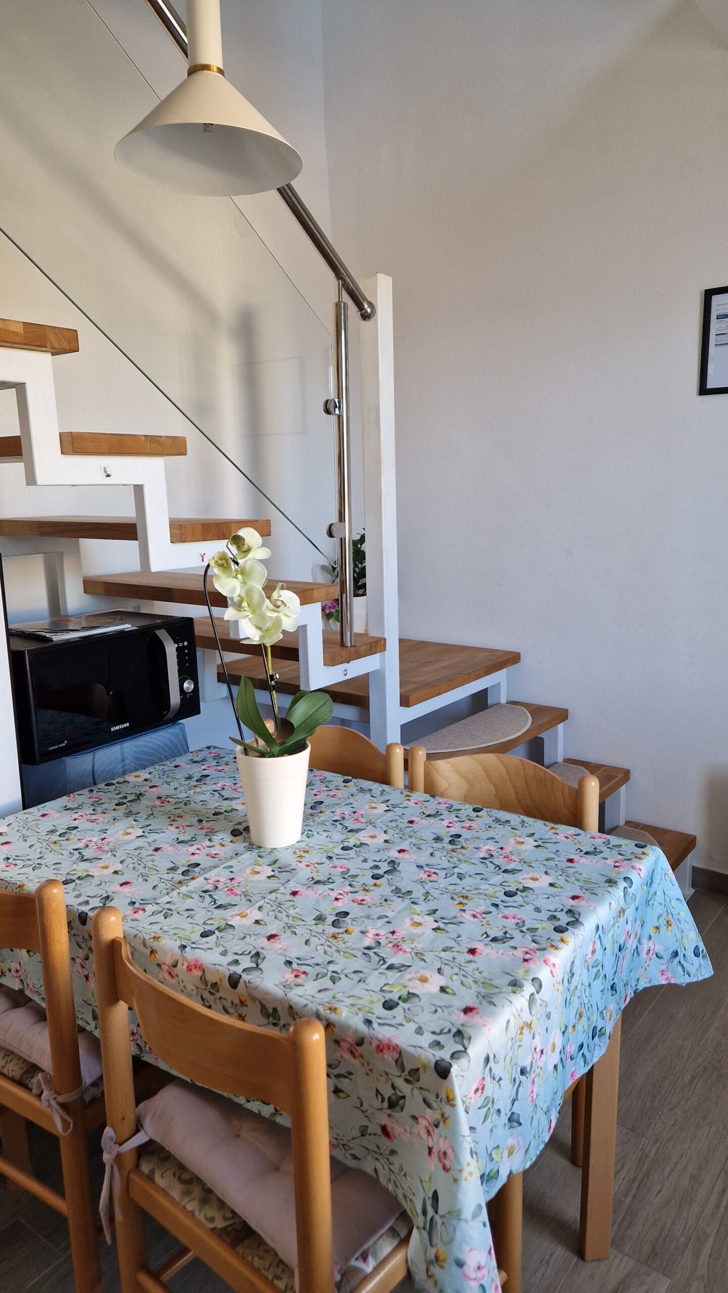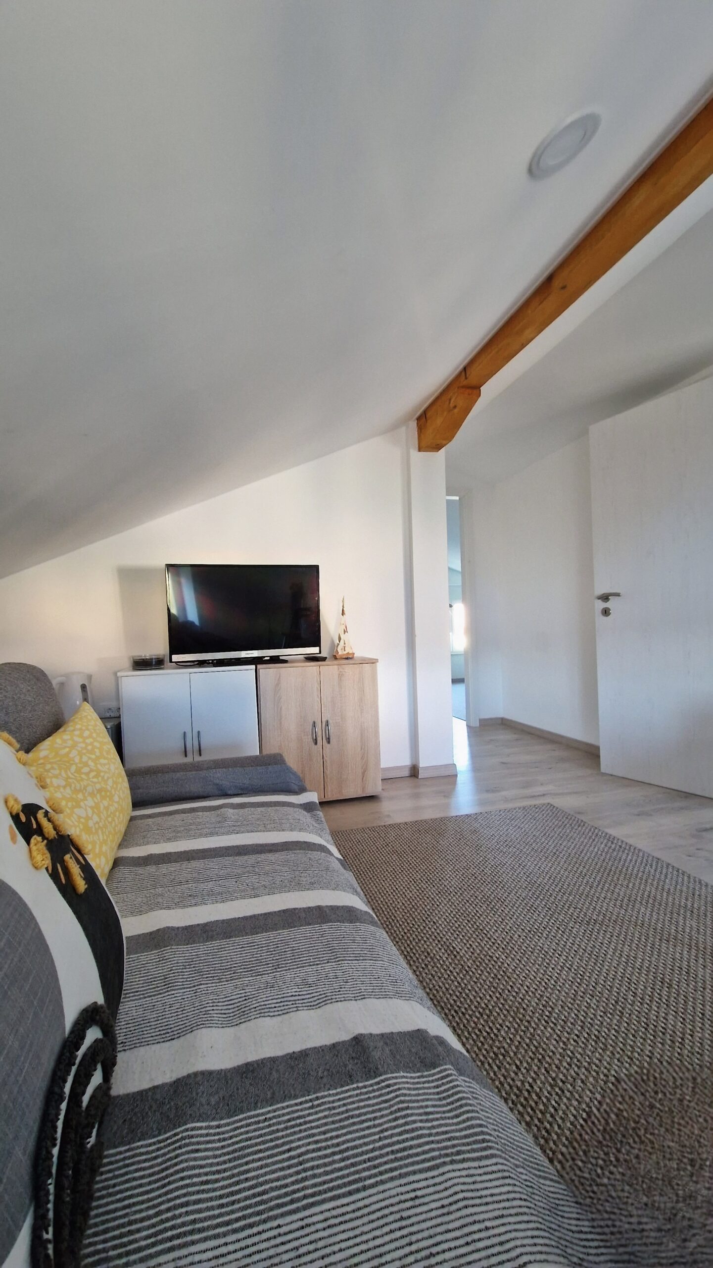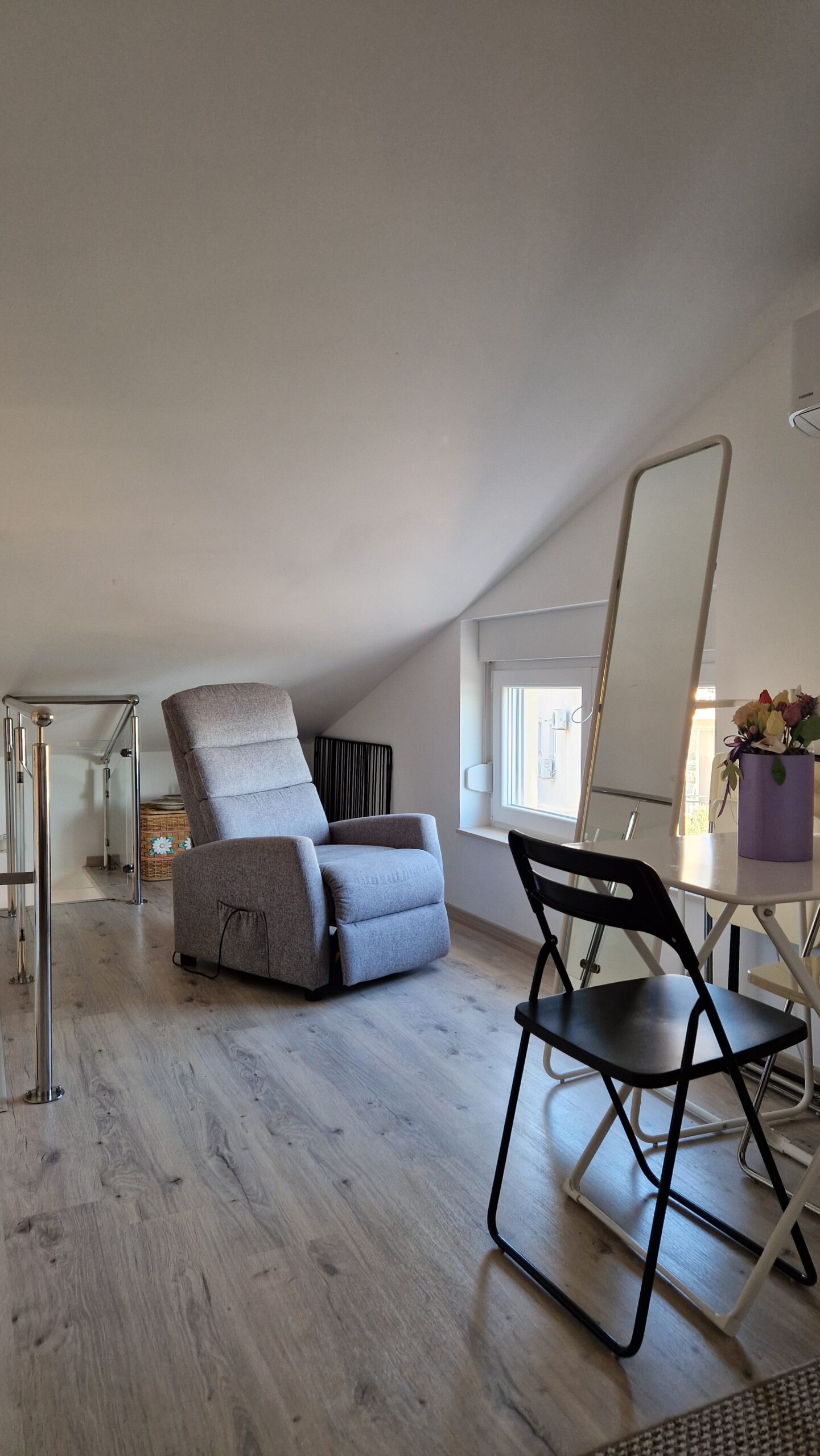 A két hálós apartman az emeleten van, kényelmes, nagy teraszáról remek kilátás nyílik a Soline öbölre.